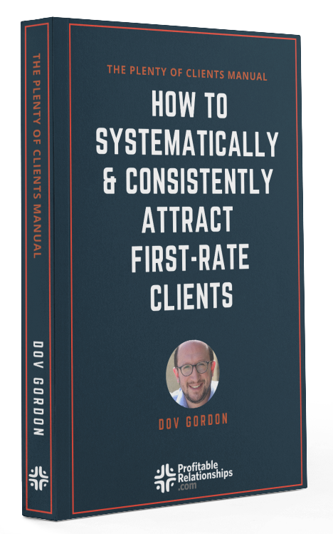 You, too, can have that consistent flow of great clients.  In this manual, Dov and helps you strike-at-the-root where the masses are running in circles and spinning plates.